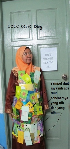 5. Blogger bergambar baju raya yang dilekat penuh dengan sampul duit raya (lagi banyak sampul yg dilekat, lagi bagus)